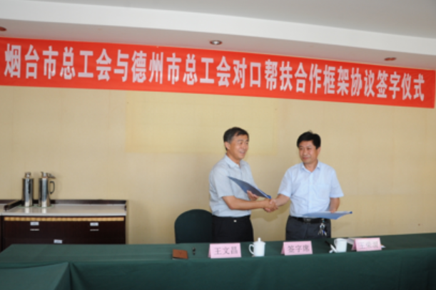 为了落实省委省政府办公厅印发的《关于开展省内扶贫协作的指导意见》,6月29日,烟台市总工会与德州市总工会签订对口帮扶合作框架协议,促进烟台、德州两市工会在深层次、宽领域开展合作。