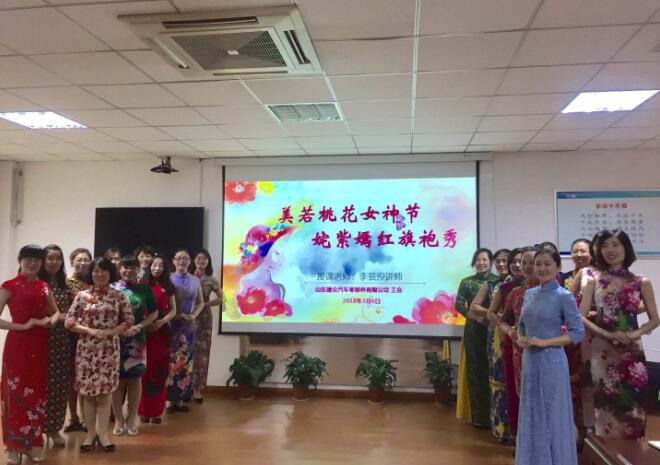 3月6号上午,福山区总工会为大韩电子(烟台)有限公司和山东捷众汽车零部件有限公司举行“区汽车零部件行业女职工培训学校流动课堂”授牌仪式。授牌仪式结束后,区总工会邀请李芸汐老师讲授礼仪方面的知识,讲座题目是《美若桃花女神节,姹紫嫣红旗袍秀》。