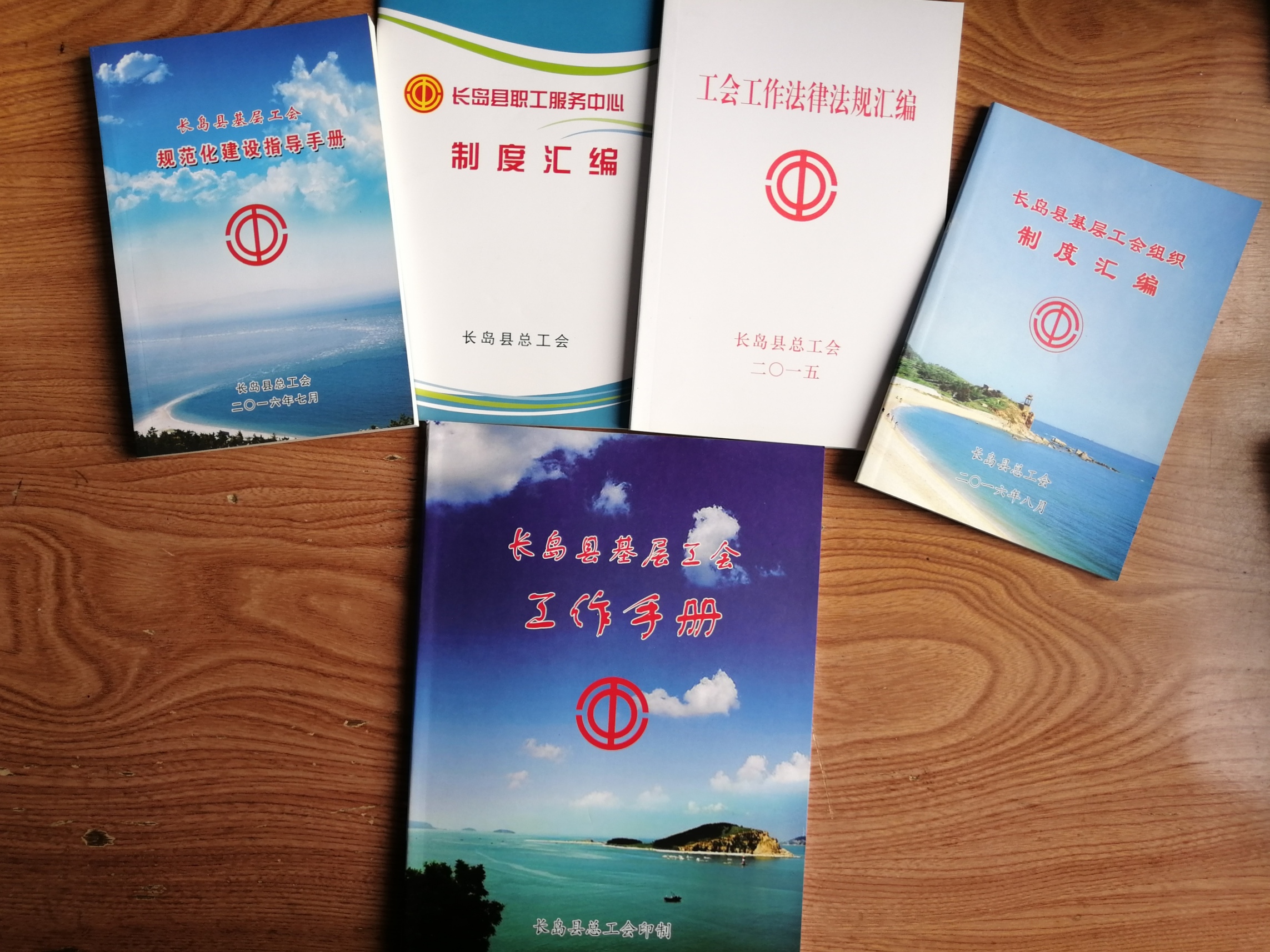 二是建章立制。先后编印了《长岛县总工会法律法规制度汇编》、《长岛县总工会制度汇编》、《长岛县基层工会规范化建设指导手册》;以乡镇(街道)工会规范化建设为标准,制定了《长岛县基层工会工作手册》,进一步强化基层工会工作制度、规范工作流程、明确责任分工,做到管理有法度,执行有标准。