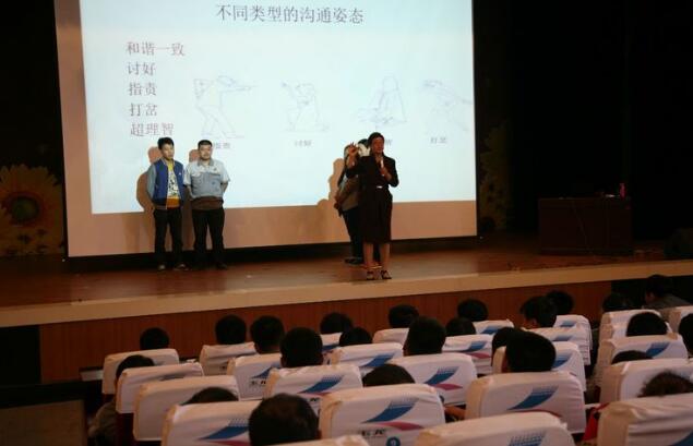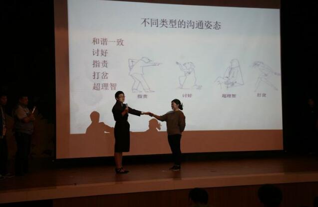 授课过程中,秦老师穿插了一些互动环节,通过邀请五名职工上台体验人与人之间的沟通与交流方式,引导职工直观感受有效沟通的重要性,帮助职工掌握处理人际关系和说话的技巧。