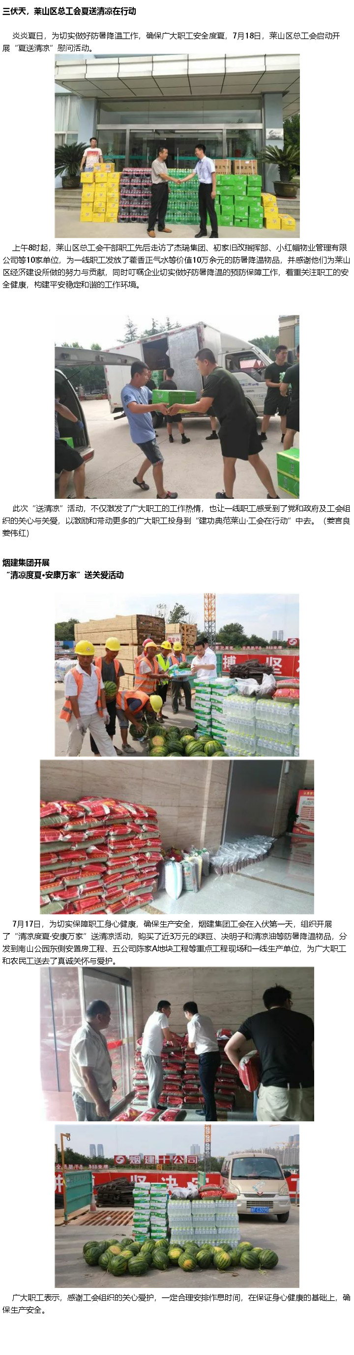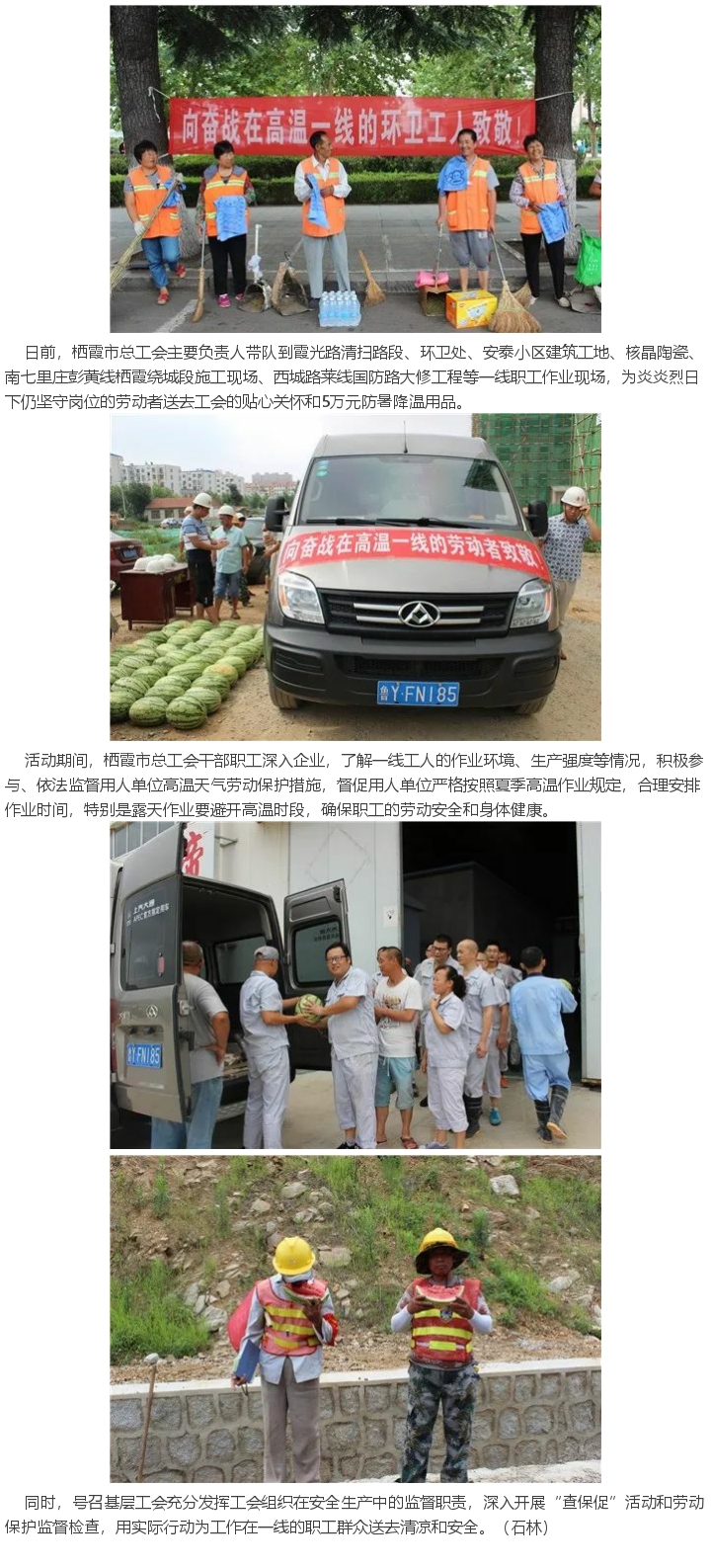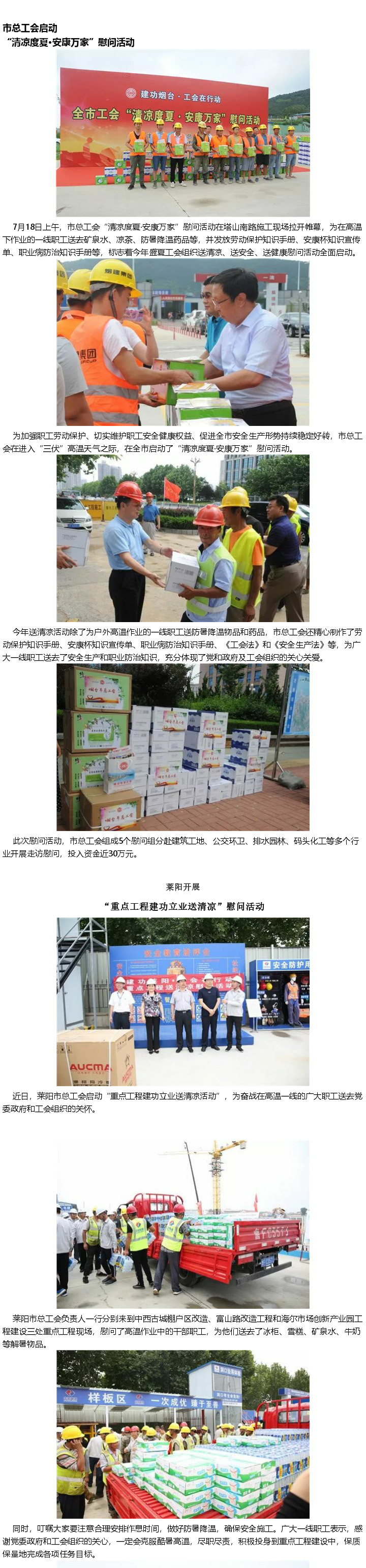 栖霞市总工会深入一线送清凉