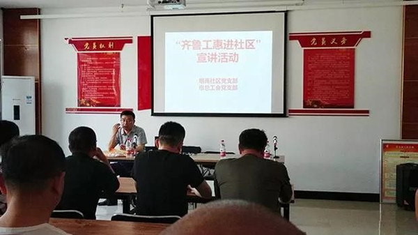 活动依次进行了重温入党誓词、宣读党章、学习习近平在纪念“五四”运动100周年大会上的重要讲话等内容,之后,人社局党支部与市总工会党支部先后安排了宣讲。这不,尹主席以工会最新推出的惠民文化活动、建设工会掌上的“职工之家”、“齐鲁工惠”APP的推广为话题,为现场的社区党员干部进行了详细讲解,还发放了宣传张贴彩页。