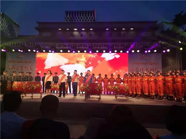 在举办安全文化夜市的同时,“我为安全生产代言”广场签名也同步开展,市领导、市直部门领导、40名各级劳模工匠以及参加活动的近千名职工,郑重在“我为安全代言”签名板上签字。晚上19:30,由四名劳模领衔的大合唱《生命至上》,拉开了“庆祝建国70周年·安全献礼”专题文艺晚会的序幕。晚会从安全生产的角度,采取相声、舞蹈、歌曲和快板等多种曲艺形式,热情讴歌建国70周年的伟大成就。为增强节目的互动性,节目中间穿插了安全知识有奖竞答,让1000多名现场观众在欢歌笑语中增加了爱国情、增强了安全观。