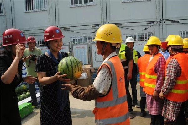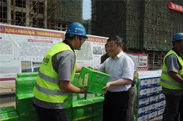 6月19日上午,市人大常委会党组副书记、副主任、总工会主席刘洪波,市总工会党组书记、常务副主席黄亚林带领相关部室负责人,到重点工程劳动竞赛现场调研,看望奋战在重点工程一线的广大职工,并送去防暑降温物品。