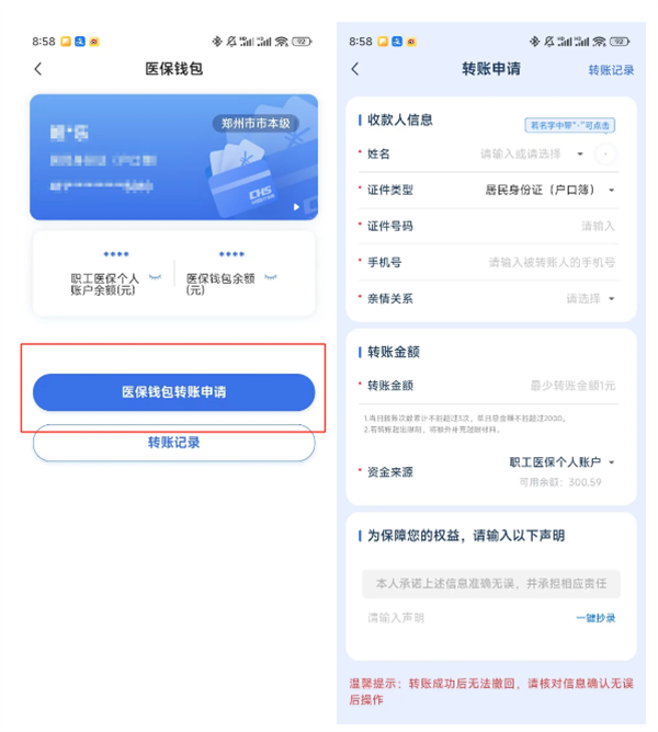 (注意:使用“医保钱包”,需要转账人和收款人的地区均开通了“医保钱包”功能,才能进行转账。)