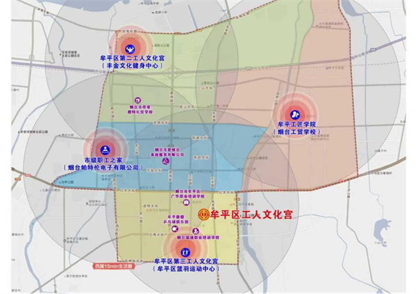 ▲分类布局:1个核心枢纽“强辐射”:以牟平区工人文化宫为主阵地,配备健身运动区、职工法律服务站、职工心理健康服务室等核心功能区,打造服务“主引擎”,辐射城区及周边3公里职工;4大分支阵地“补空白”:按“南北动静互补+东西育享并进”定位,精准填补城区服务盲区——北线(第二工人文化宫)主打文化演出、康养健身等“静享服务”,南线(第三工人文化宫)聚焦体育赛事、团队建设等“动感体验”,东线(牟平工匠学院)侧重技能培训、劳动竞赛等“成长赋能”,西线(企业职工之家)强化休闲阅读、母婴关爱等“生活配套”,覆盖城区不同区域及企业职工多元需求;14个镇街末梢“接地气”:在14个镇街建立“职工服务分站”,依托镇街现有阵地,配套简易活动空间与服务窗口,推动核心阵地服务“下沉到镇、延伸到村”,解决偏远职工“跑路远”问题。