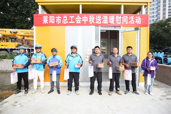 近日,山东省莱阳市总工会联合城厢街道总工会在马山社区工会驿站开展中秋送温暖慰问活动。市总工会党组书记、常务副主席陈昊参加活动。城厢街道办事处党工委副书记、工会主席张为东,马山社区、快递行业工会联合会、饿了么工会相关单位负责人,以及外卖送餐员、快递员等新就业形态劳动者代表参加,活动由市总工会副主席徐少燕主持。