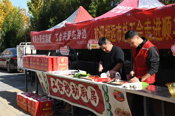 近日,“双十一”购物热潮过后,为让新业态劳动者在高强度工作中感受到工会组织的关怀,山东省招远市总工会联合顺丰鲁东区工会,以“暖心餐+实用礼包”的双重保障,送上“娘家人”的温暖,助力快递小哥全力应对“双十一”派送高峰。活动现场暖意升腾,顺丰鲁东区工会精心搭建的“移动厨房”香气四溢。工作人员甄选新鲜食材、搭配菜品:软烂脱骨的排骨、暖身驱寒的羊汤、清爽解腻的凉拌黄瓜、开胃下饭的炒辣丝,每一道菜肴都饱含“家的味道”。