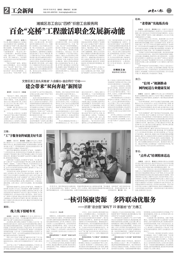 《山东工人报》(2025年12月25日 第A2版)本报讯(通讯员 左晨扬)12月19日,莱阳市总工会联合市委社会工作部、市交通运输局等在莱阳市义乌商城的“莱小憩”工会驿站举办冬至送温暖活动。