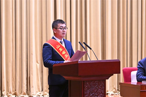 山东省庆祝“五一”国际劳动节暨省五一劳动奖获得者表彰大会,烟台职工杜君龙作为全省唯一代表宣读倡议书