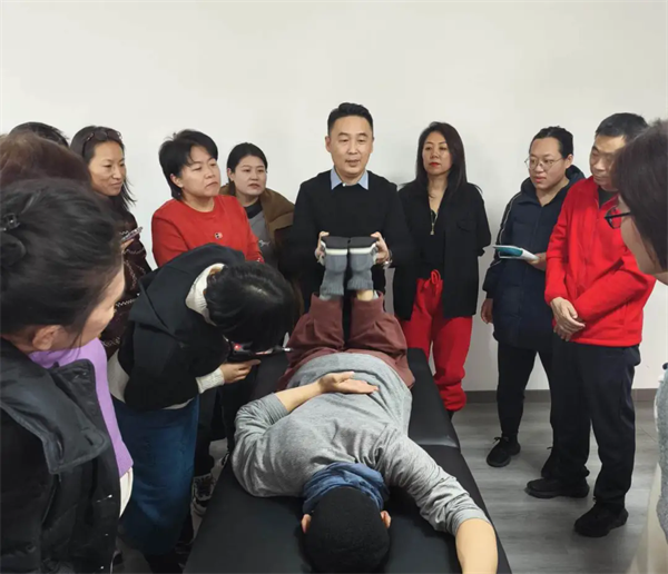 在为期四天的培训中,老师用通俗易懂的语言讲解疼痛成因,并通过剖析病例、现场示范等方式,指导学员进行针对性的手法练习,帮助学员掌握即学即用的保健手法。