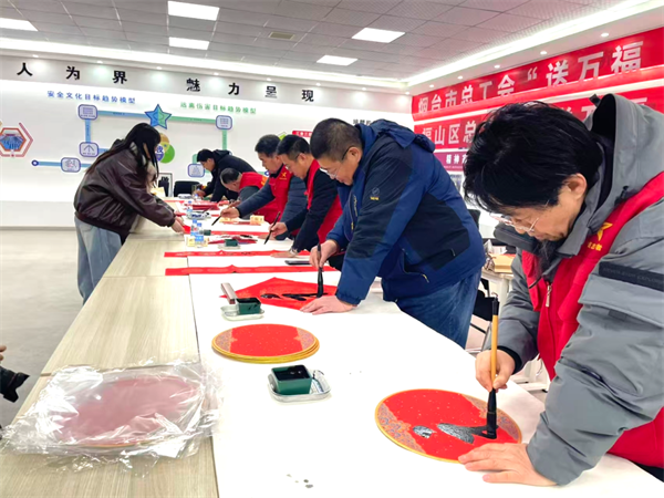 2月1日,芝罘区总工会、芝罘区文联、烟台车务段烟台站联合举办“送万福 进万家”主题活动。活动邀请书法爱好者现场创作,写春联、送福字,让浓浓年味伴随旅客踏上归途,活动荣登中央电视台《晚间新闻》节目,赢得广泛关注与好评。