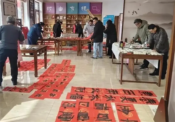 2月2日,莱州市工人文化宫联合莱州市书法家协会先后到结力工贸有限公司和福禄苑社区,开展“迎新春、送祝福”美育文化进基层活动,为一线职工和社区居民现场书写400余副春联和1000多个福字,将浓浓的年味和美好的祝福送到职工群众家门口。