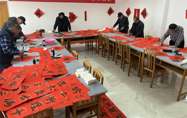 1月28日,龙口市总工会举办“墨香浸古村 万福暖新春”新春送福活动,为职工送上诚挚的新春祝福。本次活动由龙口市总工会主办、龙口市美术家协会承办,特邀8位书画家现场挥毫泼墨,红色的春联与福字铺满桌面,承载着美好期许,送到职工手中。