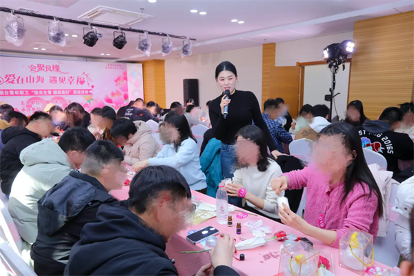 本次活动创新融入护手霜DIY特色环节,以手作互动打破社交壁垒。活动现场暖意融融,在专业老师的指导下,男女嘉宾两两协作,挑选香氛、调配基底、搅拌灌装,一瓶瓶专属护手霜承载着默契与好感新鲜出炉,缘分在温馨的氛围中悄然萌芽。除了特色手作环节,主办方还精心设计了破冰游戏、心动交流、真情告白等多个环节,大家在互动中逐渐拉近距离、相识相知。